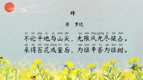 《蜂》【作者】罗隐 【朝代】唐 不论平地与山尖,无限风光尽被占。