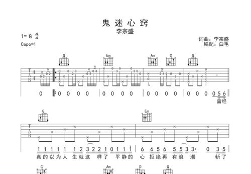 《鬼迷心窍》吉他谱李宗盛C调原版弹唱六线谱,《鬼迷心窍》是电视剧《末代皇孙》的主题曲,是由李宗盛作词、作曲、演唱。 李宗盛的歌总会让人无比喜爱,正如这首《鬼迷心窍》,你是否心中会有那么一个人一直不能放下,是否。